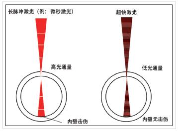 圖一:長脈衝(chong) 激光及超快激光加工比較示意圖