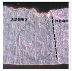 由於(yu) 該316L不鏽鋼管是焊接而成,焊接的熱效應會(hui) 留在焊縫附近的組織裏。圖七可看見未受熱影響以及受到熱影響的晶相差異。而在超快激光切割的支架上,並未發現這種差異。