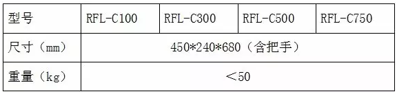 銳科50w-750w中功率單模連續光纖激光器的尺寸一般均為450*240*680mm(含把手),重量不到50kg。