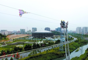 為(wei) 盡快消除風箏纏繞高壓線的影響,4月11日晚,市供電局派出無人機,欲展開清理工作,但當時正刮風下雨,現場環境惡劣,清理工作隻好暫停。