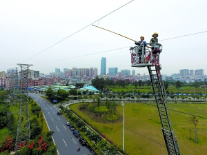 作業(ye) 從(cong) 早上8時30分開始,一直持續到下午4時許才結束。 當天共從(cong) 3條高壓線上清掉12隻纏繞的風箏及其風箏線。隨後厚街恢複正常供電。