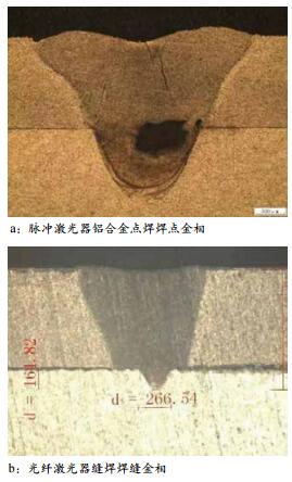 圖3:脈衝(chong) 激光器鋁合金點焊焊點與(yu) 光纖激光器縫焊焊縫金相對比