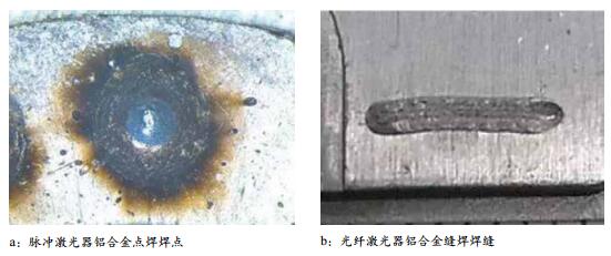 脈衝(chong) 激光器點焊焊點與(yu) 光纖激光器縫焊焊縫的外觀對比如圖 4 所示。光纖激光器連續縫焊鋁合金時,焊接過程更加平穩,不易產(chan) 生飛濺和煙塵,無需進行二次清理,在外觀和工序上均優(you) 於(yu) 脈衝(chong) 激光器。