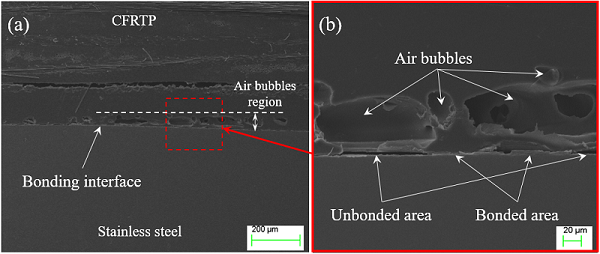 圖1. CFRTP/不鏽鋼接頭中的氣泡