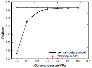 圖3 熱接觸模型和傳(chuan) 統模型比較及熱效應仿真