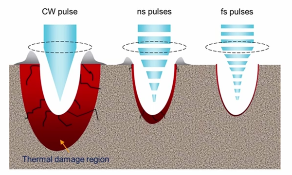 從工業應用角度看,主要是因為脈寬越短,加工時間內的熱擴散越小,加工精度高,不容易傷及無辜。