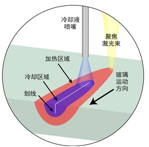 CO2和 CO 激光源加工玻璃的原理都是在局部密集加熱。具體(ti) 來說,所有玻璃都極易吸收 CO2激光器產(chan) 生的 10.6 微米波長,因此聚焦的激光束能夠快速加熱玻璃表麵或近表麵區域。為(wei) 了實現切割效果,玻璃需要相對激光束平移,並且由玻璃上方的噴液或噴氣口對玻璃進行快速冷卻。由此帶來的熱衝(chong) 擊會(hui) 讓玻璃形成連續切縫。如果玻璃較薄,切縫可以完全穿透基板,從(cong) 而直接完成切割,這叫做“整體(ti) 切割”。如果玻璃比較厚,那麽(me) 還需要額外通過一個(ge) 激光或機械式掰斷環節才能完成切割,這叫做“激光劃線”。