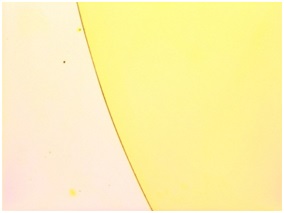圖 3.輸出功率僅(jin) 9 瓦的 CO 激光器以 140 毫米/秒的加工速率,在超薄玻璃(厚度 50 微米)上實現平滑整齊的曲線切割效果(半徑 6 毫米的圓)。