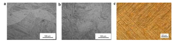圖3.2 FZ的組織:(a)0.8kW,17mm / s,(b)1 kW,50mm / s, (c)是b中的馬氏體(ti) 結構