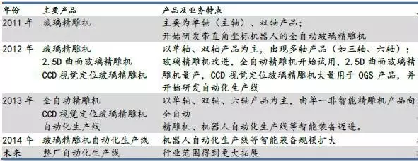 產(chan) 業(ye) 調研數據顯示,2D加工時間2-3分鍾,2.5D加工時間5分鍾,3D加工時間3分鍾;精雕機一般為(wei) 雙頭,一次出2片,良率可以達到95-98%。目前精雕機行業(ye) 保有量約10萬(wan) 台,未來需求主要是自動化設備升級。預計到2020年,用於(yu) 3D玻璃加工的精雕機累計需求約為(wei) 1.5萬(wan) 台左右,對應市場空間約為(wei) 29億(yi) 元左右。
