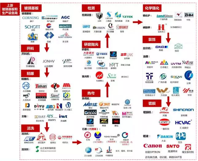 3D玻璃的產(chan) 業(ye) 鏈包括上遊玻璃基本和生產(chan) 設備商,中遊加工企業(ye) 以及下遊的應用企業(ye) 。