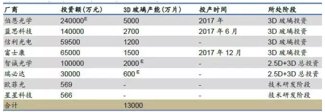 同時,國內(nei) 玻璃蓋板廠商也不斷加碼3D玻璃產(chan) 能投資,2017年行業(ye) 產(chan) 能預計為(wei) 1.3億(yi) 片左右。