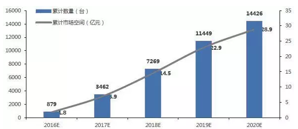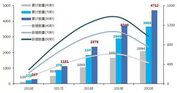 2016-2020年熱彎機新增數量及累計數量預測(台)