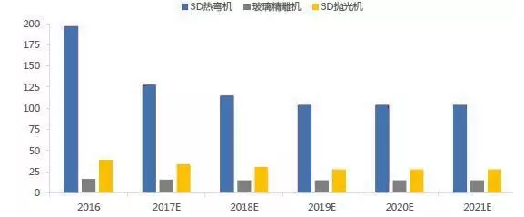 2016-2021年3D熱彎機、玻璃精雕機、3D拋光機價(jia) 格變化趨勢(萬(wan) 元)