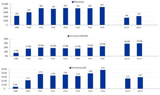 隨後舉(ju) 行的業(ye) 績發布會(hui) 中,公司CEO說明,2017第二季度市場需求持續旺盛,尤其是來自中國的微電子加工業(ye) 的需求,從(cong) 曆史數據看公司用於(yu) 微電子加工業(ye) 的激光器占比也是逐步提升。我們(men) 認為(wei) 公司的核心技術在於(yu) 準分子和固體(ti) ,其中準分子用於(yu) FPD領域的退火(OLED產(chan) 品基本都用準分子激光退火(ELA));固體(ti) 激光器未來大的空間就是紫外激光用於(yu) 消費電子等領域的高精度加工。