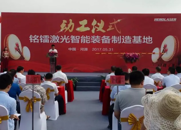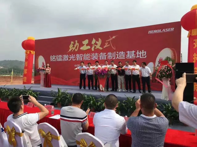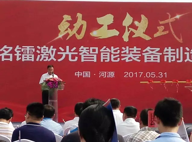 早上9點18分,儀(yi) 式正式開始,首先深圳市銘鐳激光設備有限公司董事長王餘(yu) 生對各位嘉賓的到來表示了熱切的歡迎,並為(wei) 各位到場的嘉賓介紹我們(men) 公司的發展曆程及銘鐳激光智能裝備(河源)有限公司未來規劃:深圳市銘鐳激光設備有限公司成立於(yu) 2004年,注冊(ce) 資金6500萬(wan) ,是國家級高新技術企業(ye) ,從(cong) 事激光設備研發、生產(chan) 與(yu) 銷售的集團公司。銘鐳激光智能裝備製造基地項目占地3萬(wan) 平,規劃建築麵積5萬(wan) 平,總投資1.2億(yi) ,預計2018年底投入使用,建成將為(wei) 東(dong) 源縣經濟發展,就業(ye) 貢獻銘鐳激光的力量。