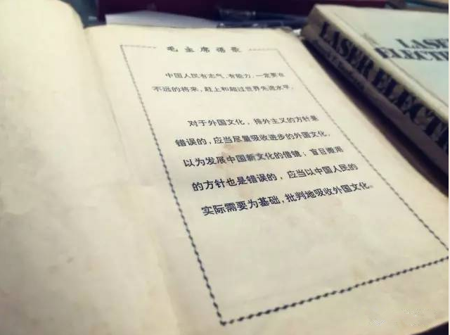 扉頁毛主席語錄寫(xie) 著:“中國人民有誌氣,有能力,一定要在不遠的將來,趕上和超過世界先進水平。”