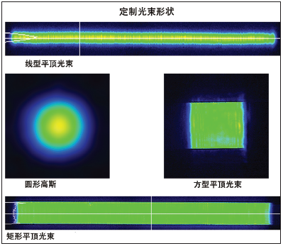整個諧振器短於10cm,從而使脈寬低於10ns,並且獲得高峰值功率。 此外,光束形狀可以輕易變換,從圓形高斯, 到線型一維或二維平頂光束,定製的光束形狀是理想的工業應用解決方案的基礎(圖2)。