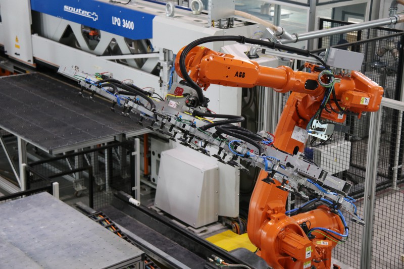 首鋼哈爾濱汽車板加工配送中心激光拚焊機組日前成功試生產,比長安福特哈爾濱工廠要求工期提前25天,超前兌現了承諾,提升了首鋼汽車板的加工配套能力,標誌著首鋼汽車板營銷服務體係進一步完善。圖為正在運行的激光拚焊機組建產線。