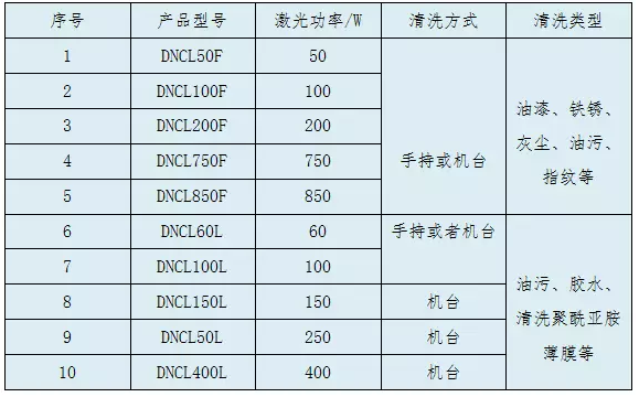 Cleanlaser產(chan) 品類型