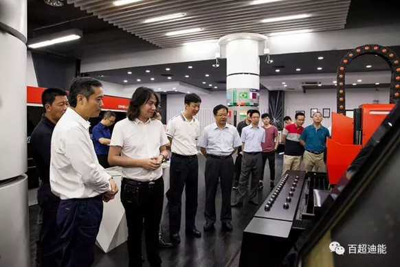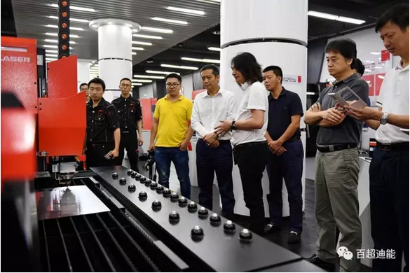 2017年6月21日,深圳市寶安區區長姚任率領黨(dang) 政領導一行蒞臨(lin) 百超迪能激光機製造基地進行企業(ye) 調研。