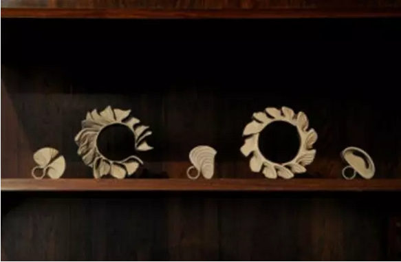 02一組首飾,卻仿佛是建築的語言。英國設計師Anthony Roussel以藝術的手法表現首飾,使用激光切割的樺木,層層粘合,製作戒指、手鐲,如現代雕塑一樣,富有韻律。