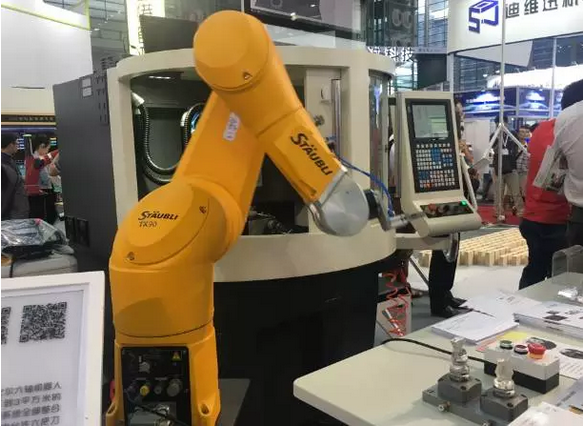 固高科技(香港)有限公司在展館上展出的雲平台精密五軸加工機及機器人上下料展示,占地麵積不到3平方米的緊湊設計,將刀庫、切削液係統及電主軸冷卻係統全部整合在機床底座內,使用效率最大化,不受限製的發揮工業4.0的優勢。