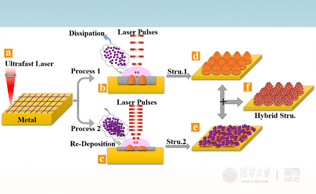 超快激光脈衝(chong) 注入雙級調控金屬表麵微米-納米雙尺度結構新方法。