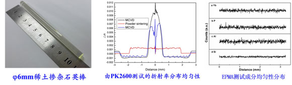 “十二五”以來,高功率激光單元技術研發根據上海光機所“一三五”總體發展戰略指引,在中科院“重點部署項目”的支持和牽引下,在國內率先開展了百微米纖芯直徑的大模場光子晶體光纖製備技術攻關,先後突破了大直徑低NA稀土摻雜石英玻璃芯棒的製備技術、空氣孔微結構光子晶體光纖的拉製技術以及相關的檢測和評估技術,建立和逐步完善了一整套有源光纖預製棒製備、光纖拉製及性能檢測平台,為上海光機所培養了一支特種光纖材料研製方麵的專業人才隊伍,為推動 “先進光纖激光與光子學技術”的學科發展奠定了關鍵材料的堅實基礎。