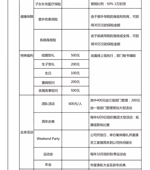 商業醫保、高端醫療保險、年度體檢、節日福利、年度旅遊、團隊活動