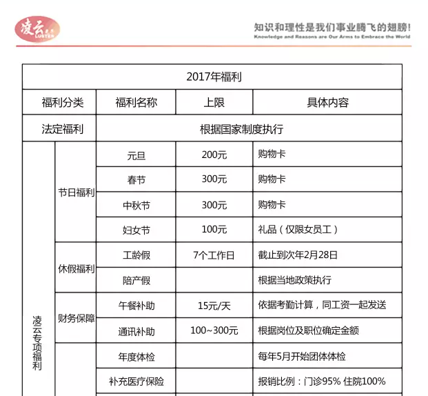 淩雲沒有提供具體的薪酬範圍,但是卻有誠意地提供了福利明細,這可是百聞不如一見的。