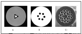 光子晶體光纖采用空氣與石英玻璃複合的材料結構,該結構可以大幅度提高纖芯與包層之間較大的折射率反差,這種結構可以很好地將光波電磁場嚴格限製在光纖芯中。圖1是3種典型的不同結構的FTTH用光子晶體光纖。