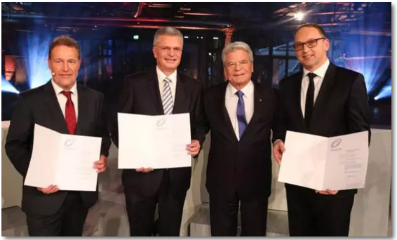 德國前總統高克頒獎,左二為(wei) 克勞斯艾姆爾曼教授