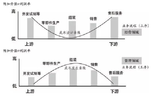 事實上,製造業並沒有那麽悲觀,理論和實踐上都存在與微笑曲線相反的現象。2004年日本索尼中村研究所所長中村末廣提出了“武藏曲線”,即和微笑曲線相反的拱形曲線——真正最豐厚的利潤源正是在“製造”上。而2005年6月,日本《2004年度製造業白皮書》通過對近400家製造業企業的調查也驗證了,認同 “製造&組裝”利潤率最高的企業非常多。而中國製造業之所以被微笑曲線所迷惑,根本原因是中國製造業的管理水平糟糕。