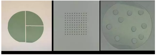 圖1 超快激光切割碳化矽(左)鑽孔柔性陶瓷(中)切割藍寶石(右)