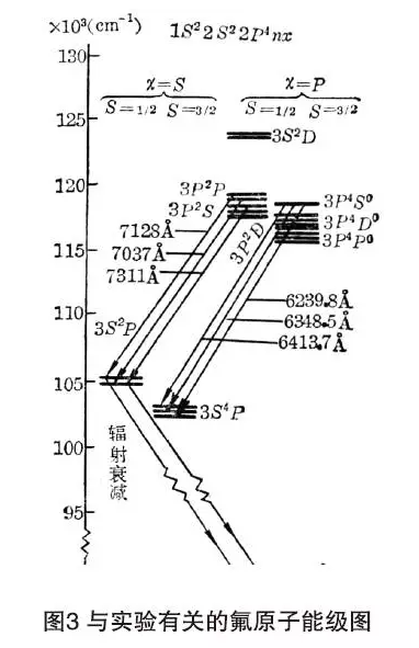 至此可以充分肯定,在我們實驗室發現了一組來自上能級3P4S0的三支氟原子激光譜線。但激光輸出不算強,在理論上其量子效率隻有13%,不算高,而且容易形成超輻射。