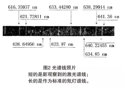 我們注意到,工作室不充Xe,紅光也會出現。由此可推算紅光來自氟元素的可能性最大。但查閱資料卻找不到氟原子或氟分子出激光的報道。順便在此說說,20世紀70年代中期,中國尚未進入改革開放,狀態比較封閉,到圖書館或情報室查資料,絕大部分外國的學術雜誌是影印本,消息大都滯後一年半載以上。
