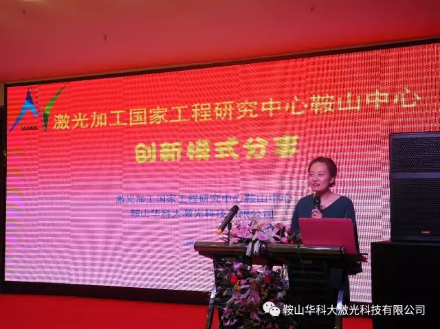 鞍山華科大激光科技有限公司副總經理單平致答謝詞,首先感謝遼寧省、鞍山市及高新區各級領導對中心的大力支持,對國內(nei) 激光界及東(dong) 北地區激光應用單位的與(yu) 會(hui) 代表表示熱烈歡迎。五年來,公司以遼寧(鞍山)激光產(chan) 業(ye) 園為(wei) 基地,致力於(yu) 東(dong) 北區域的激光加工技術示範、應用和推廣工作,為(wei) 東(dong) 三省激光應用的普及和用激光技術改造和提升傳(chuan) 統產(chan) 業(ye) ,做出了成績與(yu) 貢獻。