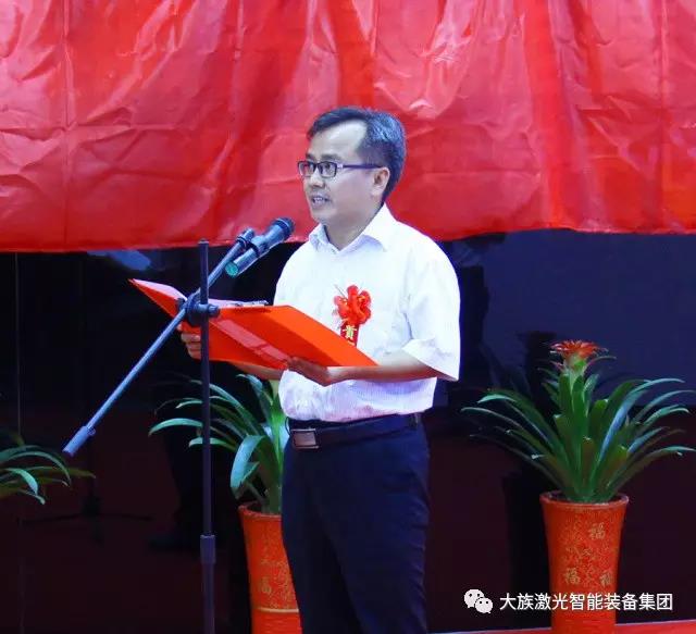 長沙市雨花經開區郭四軍書記首先致辭。郭書記對各位嘉賓的到來表示最熱烈的歡迎,向大族激光表示熱烈的祝賀,高度讚揚大族激光二十年所取得的成就,熱忱展望未來雙方合作願景,並對智能裝備集團陳焱總經理表示由衷欽佩與讚賞,對大族激光未來發展致以美好祝福。