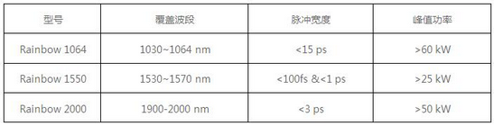 NPI擁有最全的超快光纖激光產(chan) 線,Rainbow係列包含1微米、1.5微米和2微米波長的超快光纖激光器,實現了近-中紅外常用波段的覆蓋,可增加諧波產(chan) 生器實現綠光及紫外可見光輸出。另外NPI Lasers還可以根據客戶對波長的具體(ti) 需求進行定製化生產(chan) 。