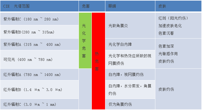 其中,過量激光照射的病理效應和常見疾病匯總如下表: