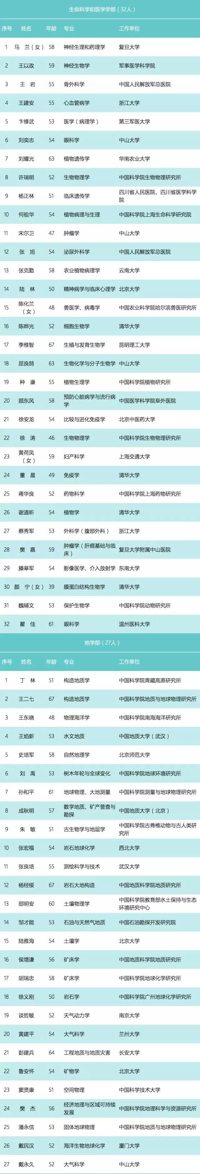 中國科學院各學部初步候選人分布如下:數學物理學部23人、化學部25人、生命科學和醫學學部32人、地學部27人、信息技術科學部20人、技術科學部30人。