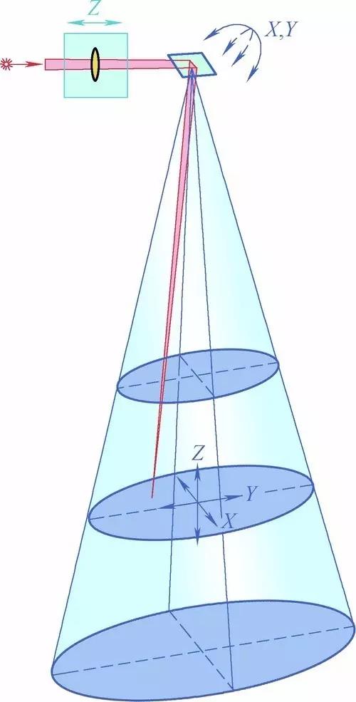 通過一個(ge) 輔助透鏡係統的移動,焦點可以在Z軸方向以極高的動態性移動,從(cong) 而無需移動激光頭或者工件,就可以對三維工件進行完整的加工。