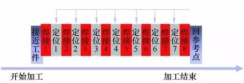 傳(chuan) 統激光焊和激光飛行焊的工步如圖4、圖5所示。經對比可以看出,激光飛行焊實現了在線時間最大化,有效生產(chan) 時間占整個(ge) 工作時間的90%以上。