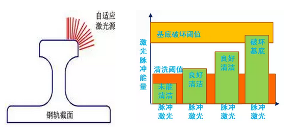 1、清洗光源可自適應鋼軌弧麵形貌,最大程度減少基材破壞,鏽蝕清除率大於99%,基材損傷<0.01 mm;