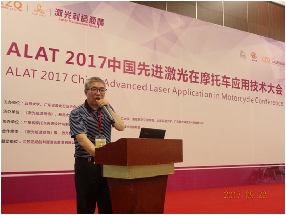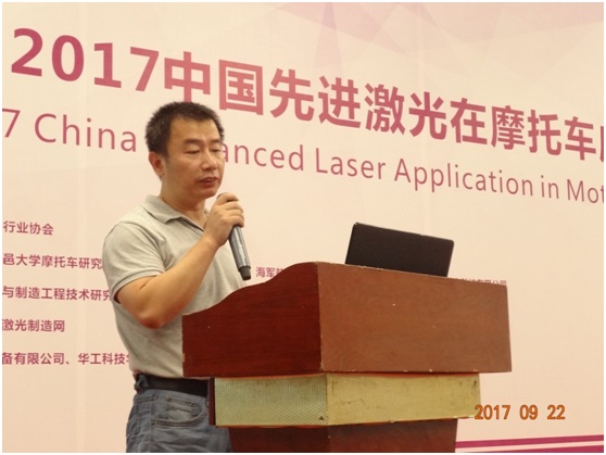 江蘇亞(ya) 威創科源激光裝備有限公司朱正強總經理就“創科源三維激光切焊助力摩托車行業(ye) ”作演講報告