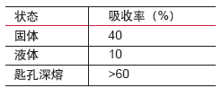 表:在不同狀態下,銅對近紅外激光輻射的吸收率。