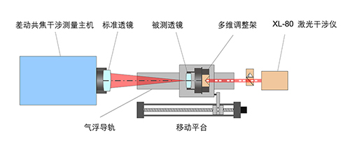 球麵鏡(透鏡表麵是球麵的一部分)被廣泛應用於工業、科研等範疇,特別是半導體製程中的光刻機、航天攝像係統、望遠鏡等對內部光學組件有極嚴格要求的應用,每個組件的微小加工誤差對係統的成像質量都有著極大的影響。在北理工成功開發激光差動共焦幹涉組件測量儀之前,市場上沒有能同時進行相關參數測量的儀器。北京理工大學光電學院教授趙維謙教授在解釋測量儀器的結構和工作原理時說:“我們應客戶的要求來定製不同規格配置的測量儀器,基本機構主要由差動共焦幹涉測量主機( 包含差動共焦幹涉光路)、標準透鏡、氣浮導軌、多維調整架、機電移動平台和雷尼紹XL-80激光幹涉儀組成。差動共焦幹涉測量主機向被測鏡射出測量光束並聚於標準透鏡焦點處,被測透鏡通過多維調整架架設在氣浮導軌上,由機電移動平台帶動調整架與被測透鏡沿光軸方向移動。當測量光束匯聚點與被測透鏡前表麵頂點或後表麵頂點重合時,光束由被測鏡表麵反射,沿路返回進行數據分析,同時測長激光幹涉儀 (XL-80) 實時采集被測透鏡的位置坐標數據。”