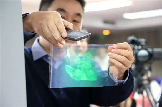 桑新柱教授展示全息照片。