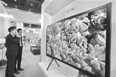 “京東(dong) 方”展示的全球領先的8K全係列超高清顯示屏 記者詹鬆 攝